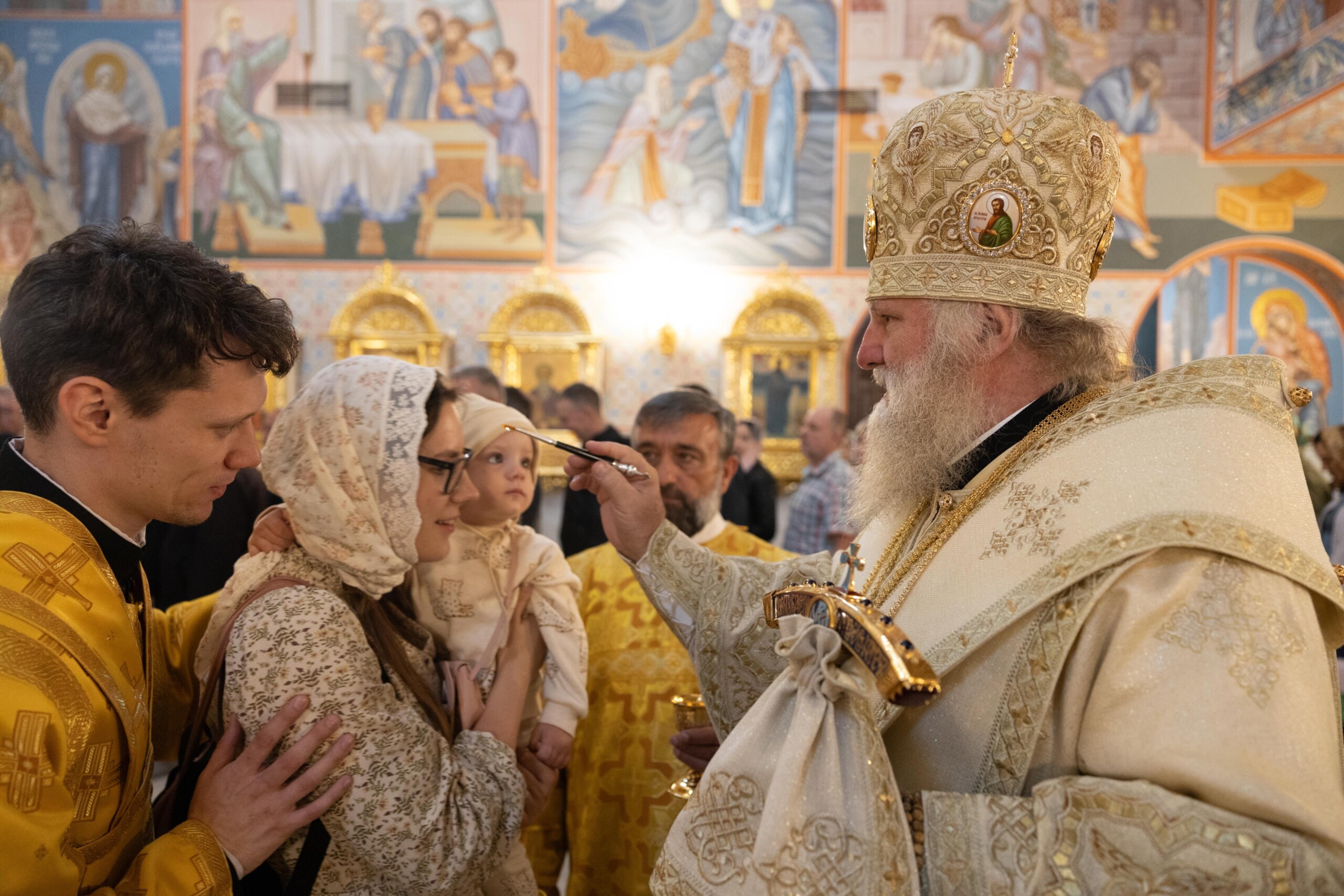 30 ноября на приходе храма в честь иконы Божией Матери «Всех скорбящих Радость» г.Лангепаса после Божественной литургии настоятель храма, благочинный Лангепасского благочиния иерей Евгений Чебыкин поздравил прихожанок-мам и бабушек.