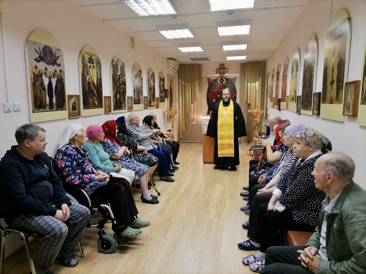Отец Александр окропил святой водой помещения приюта, побеседовал с подопечными центра и рассказал им о смысле и пользе Рождественского поста.