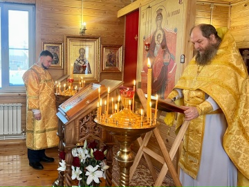 В субботу и воскресенье, 7-8 февраля 2026 года, клирик Знаменского храма иерей Тарасий Борозенец по просьбе благочинного Ханты-Мансийского благочиния иерея Димитрия Губанищева совершил в Храме Илии Пророка г. Ханты-Мансийска Всенощное бдение и Божественную Литургию.