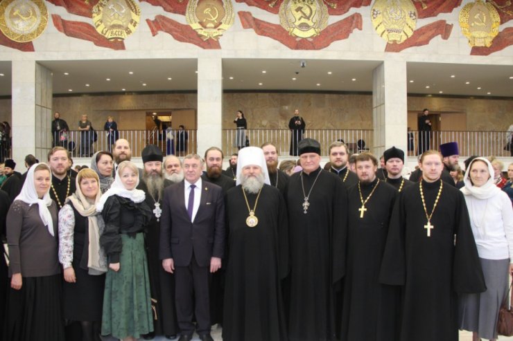 В президиуме также присутствовали: председатель Оргкомитета Чтений, председатель Синодального отдела религиозного образования и катехизации митрополит Ростовский и Новочеркасский Меркурий; председатель Государственной Думы ФС РФ С.Е. Нарышкин; первый заместитель председателя Совета Федерации ФС РФ Н.В. Федоров; заместитель министра культуры РФ А.В. Журавский; полномочный представитель Президента РФ в Центральном федеральном округе, руководитель Рабочей группы при Президенте РФ по подготовке к празднованию 1000-летия присутствия русских на Святой Горе Афон А.Д. Беглов; первый заместитель министра образования и науки РФ Н.В. Третьяк; статс-секретарь, заместитель министра иностранных дел РФ Г.Б. Карасин; руководитель Департамента национальной политики, межрегиональных связей и туризма г. Москвы В.В. Черников; ректор Московского государственного университета им. М.В. Ломоносова В.А. Садовничий.