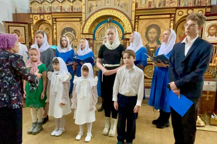 По окончании богослужения учащиеся воскресной группы Прихода Знаменского храма совместно с вокальным ансамблем «Гармония» под руководством педагога Галины Николаевны Шустовой подарили всем присутствующим за богослужением небольшой праздничный концерт, посвященный Дню Казанской иконы Божией Матери и Дню народного единства.