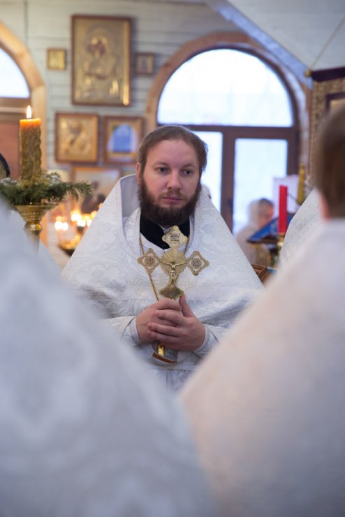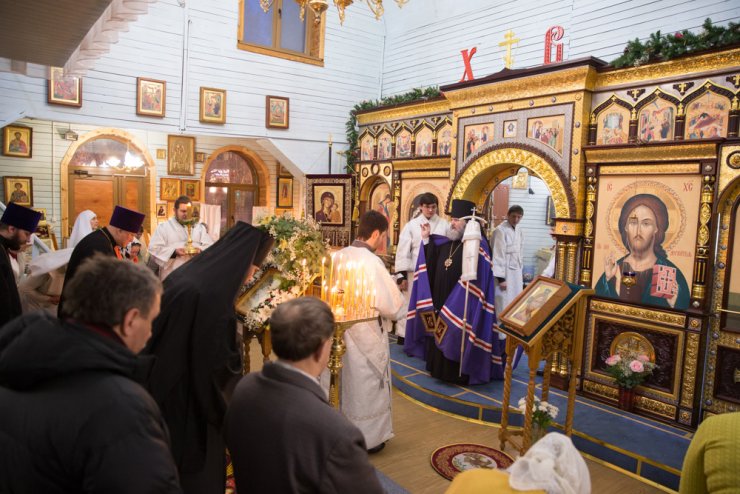 Его Преосвященству сослужили председатель епархиальной канцелярии иерей Сергий Нагорный, настоятель прихода председатель епархиального отдела социального служения и благотворительности иерей Леонид Бартков, клирик храма иерей Константин Мемячкин. После богослужения владыка обратился ко всем собравшимся и поздравил с Рождеством Христовым. В ответном слове настоятель прихода иерей Леонид благодарил архипастыря поздравления за соборную молитву.