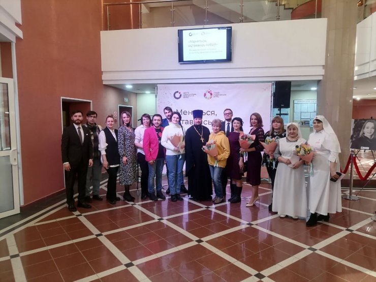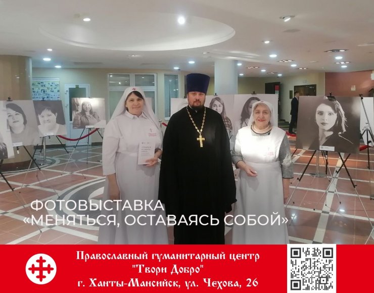 15 марта 2023 года настоятель храма в честь иконы Божией Матери «Знамение» иерей Леонид Бартков, сестры милосердия Колычева И.Г., Рушакова Т.С. и волонтеры Православного гуманитарного центра «Твори Добро» посетили фотовыставку «Меняться, оставаясь собой».
