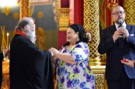 «Дорогой владыка,дорогие братья и сестры! Я очень рада быть здесь, с вами, в такой особенный год, как упомянул влаыдка, в столетнюю годовщину трагедии в Екатеринбурге.