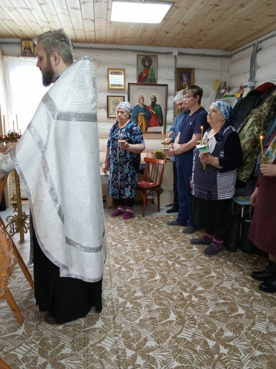 В храме в честь первоверховных апостолов Петра и Павла отец Андрей совершил Таинство соборования, исповеди и причастия (12 человек).