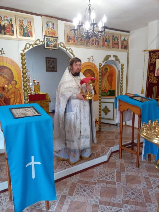 Сопровождал настоятеля алтарник храма Вторушин О.В. В храме в честь иконы Божией Матери «Всех скорбящих Радость» п. Выкатной о. Леонид отслужил Божественную Литургию, за которой исповедалось и причастилось 7 человек. По окончании Литургии батюшка освятил два дома местных жителей.