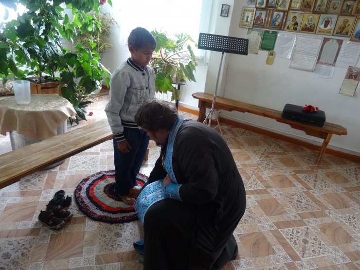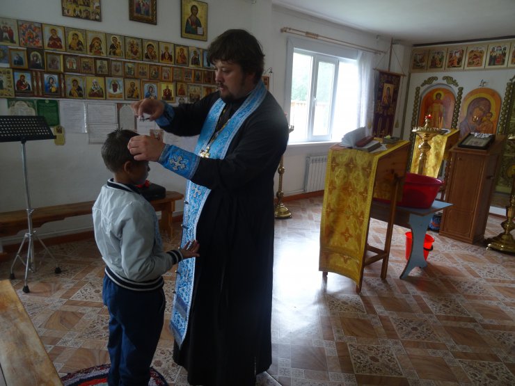 В храме в честь иконы "Всех скорбящих Радость" п.Выкатной о.Леонид Бартков провёл огласительную беседу и совершил одно Таинство Крещения.