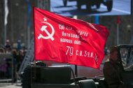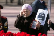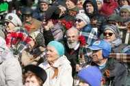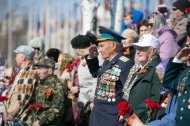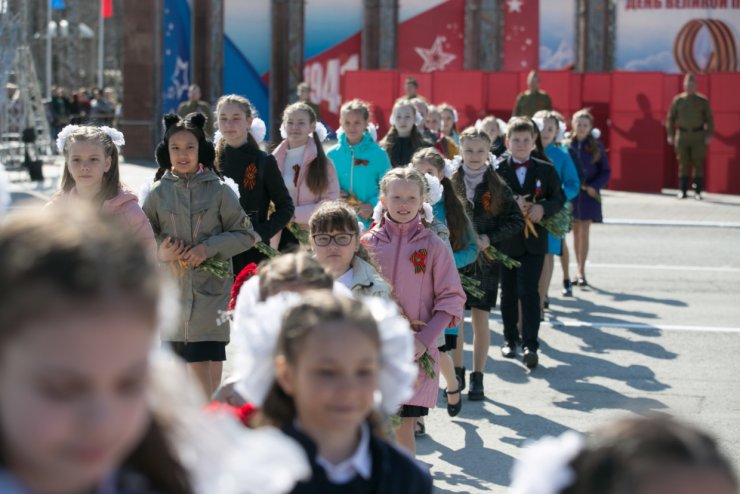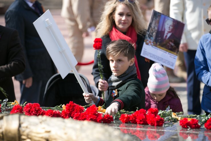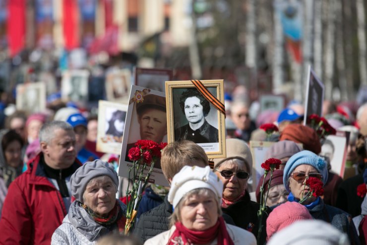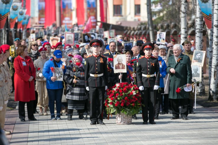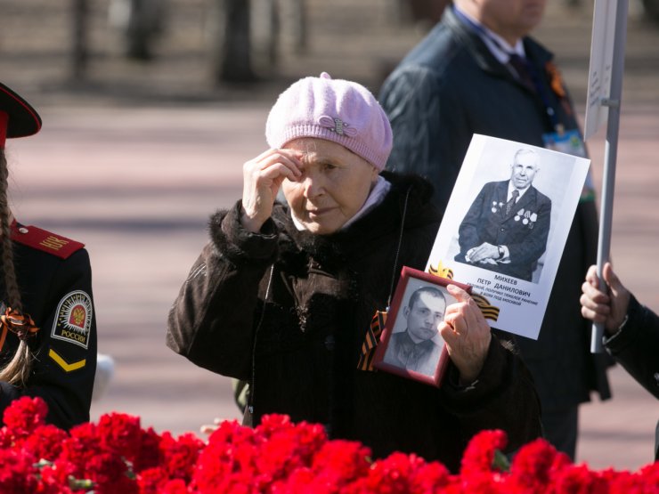 Вслед за парадом на главную городскую улицу вышла колонна «Бессмертного полка» с фотографиями солдат Великой Отечественной войны.