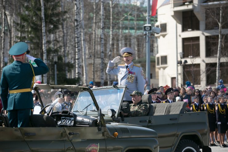 В ознаменование 74-й годовщины Победы Советского народа в Великой Отечественной войне, соблюдая ратные традиции Российской Армии, завершил церемонию парад военизированных подразделений, ветеранов боевых действий, кадетских классов, юнармейских отрядов, военной техники времен войны. Командовал парадом начальник Управления Министерства внутренних дел России по Югре, генерал-майор Василий Романица.