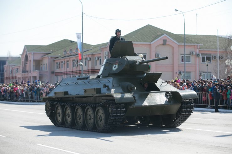 За участниками марша проследовал парад военной техники. Первым прошел американский армейский автомобиль повышенной проходимости времён Второй мировой войны Willys MB (Виллис), затем – советский тяжёлый мотоцикл М-72. Также по центральной улице югорской столицы прошли легендарный танк Т-34, принятый на вооружение 19 декабря 1941 года и ставший самым лучшим танком второй мировой войны. Завершила парад знаменитая «Катюша» — боевая машина реактивной артиллерии периода Великой Отечественной БМ-13.