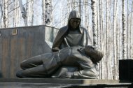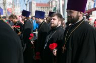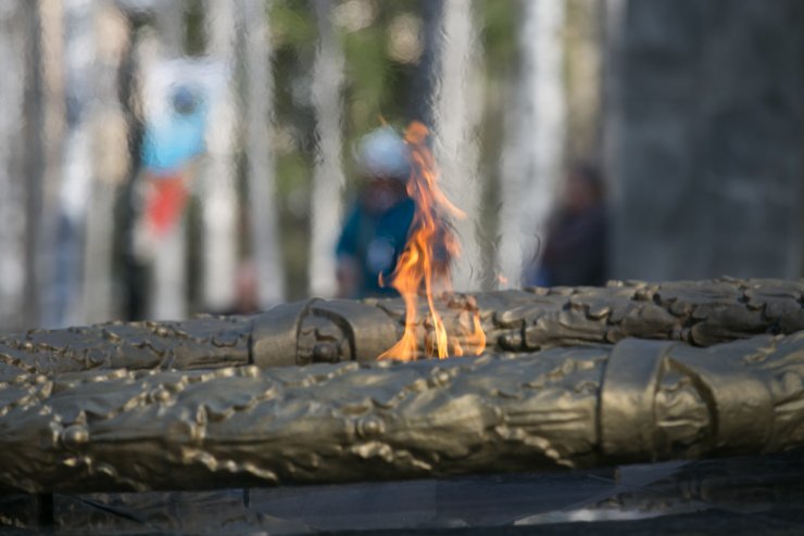 Все участники шествия возложили цветы к вечному огню в городском парке Победы.