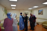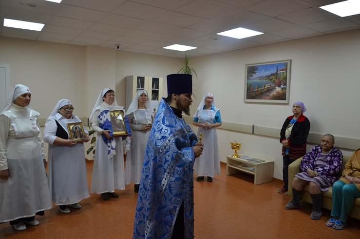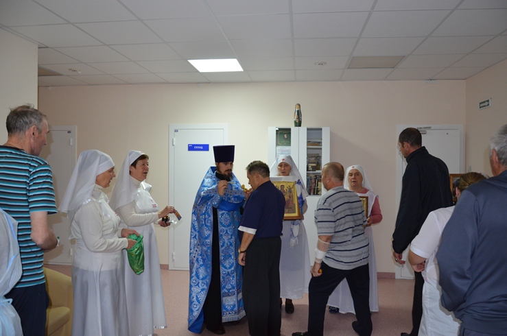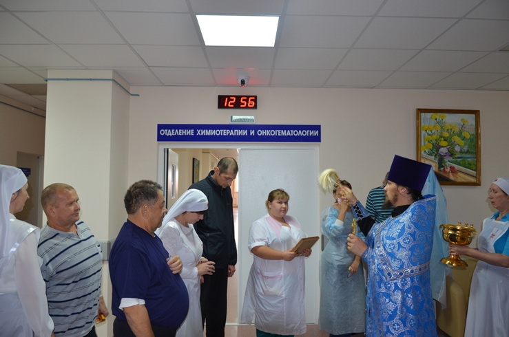31 августа в день празднования иконы Божией Матери «Всецарица», которая имеет благодать исцелять страшнейшую из болезней современного человечества – онкологию, иерей Владимир, клирик храма «Знамение», и сестры милосердия города Ханты-Мансийска в часовне в честь Великой княгини Елисаветы и инокини Варвары Окружной клинической больницы отслужили молебен с чтением акафиста иконе Божией Матери «Всецарица», посетили пациентов Окружного онкологического центра. Соборной молитвой во всех отделениях Онкоцентра вместе со страждующими они обратились к Божией Матери об исцелении и помощи, окропили святой водой, подарив каждому маленькую икону с образом «Всецарицы». О.Владимир передал медперсоналу каждого отделения Онкоцентра иконы Божией Матери «Всецарица», подчеркнул, что тяжело не только пациентам, тяжело и врачам, которые совершают подвиг своего служения, всем необходима духовная поддержка и помощь. Божия Матерь являет Свою неизреченную милость и подает исцеление всем, кто с верой и любовью обращается к Ней в молитве пред Ее прославленным образом.