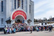 Неустанно молитвенно прославляя воскресшего Спасителя, под колокольный звон православные верующие Ханты-Мансийска с крестами, хоругвями, иконами прошли от Воскресенского кафедрального собора до храма в честь иконы Божией Матери «Знамение» и по другой дороге вернулись обратно.