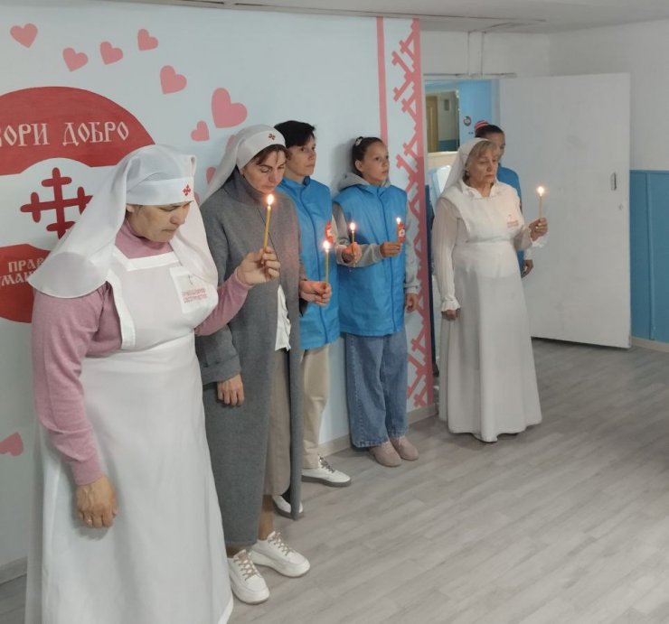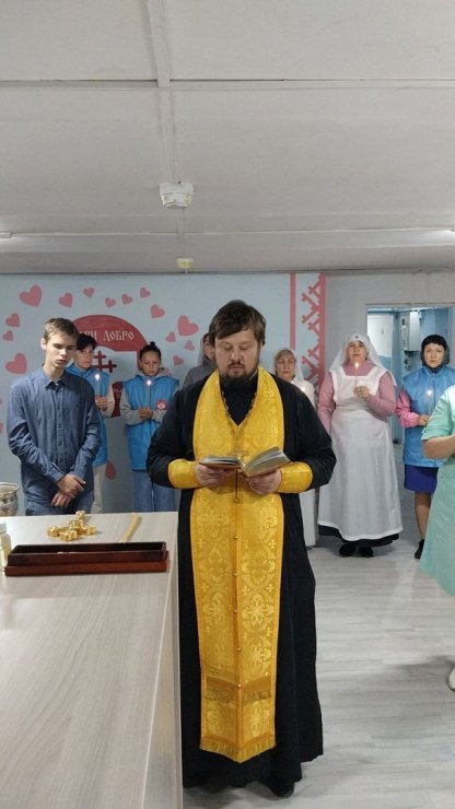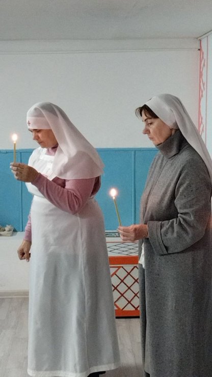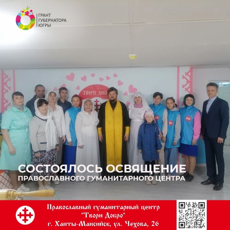 Теперь наш цоколь справедливо называется благословенным. Призвать на помощь в труде небесные силы собрались волонтёры, сёстры милосердия и прихожане Знаменского храма. Помолились, пропели тропарь Кресту, окропили помещения центра святой водой. В завершение воскресной встречи сделали общее фото и организовали постную трапезу.