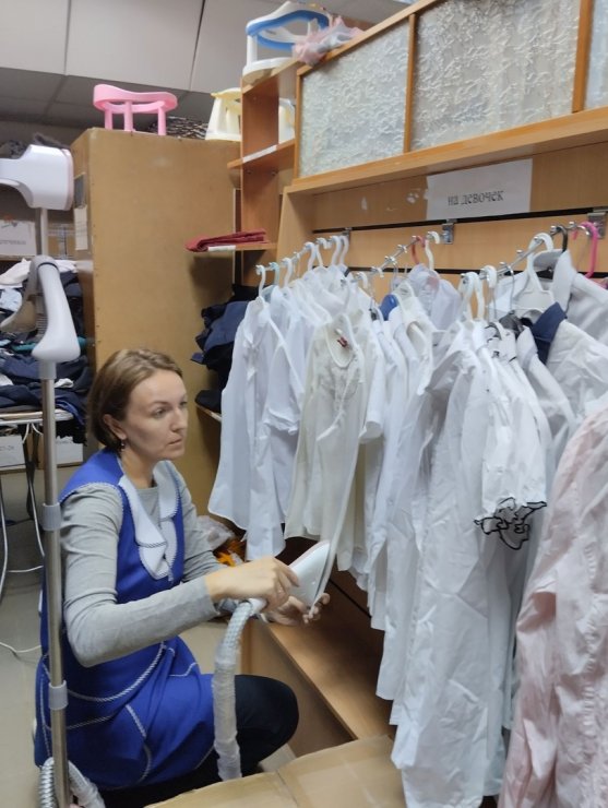 В субботу и воскресенье мы ждем в гости семьи школьников. Акция нацелена на семьи льготных категорий горожан. Летом сестры милосердия бережно собирали в коробки школьную форму. И вот настало время их распаковать. Сильно облегчили работу волонтеров новые гаджеты: купленные на деньги гранта губернатора Югры парогенератор и паровой утюг. Сейчас на плечиках мирно покоятся несколько десятков отглаженных блузок, рубашек, платьев и костюмов для учеников средней школы. Найдется форма и для учащихся Православной гимназии. Размеры разные. Сегодня добровольные помощники гуманитарного центра продолжат подготавливать детскую и подростковую обувь и верхнюю одежду.