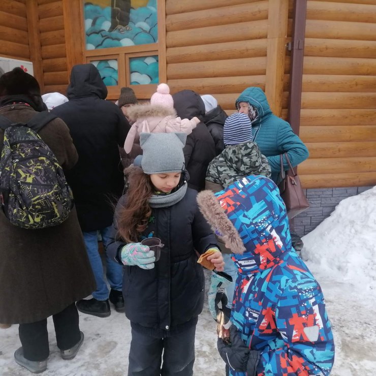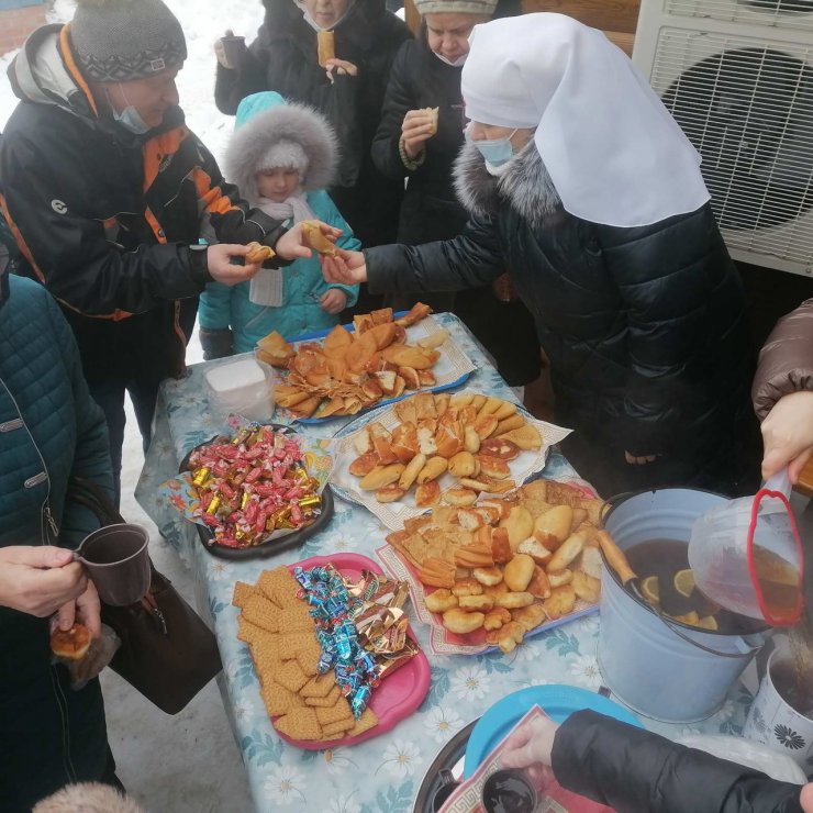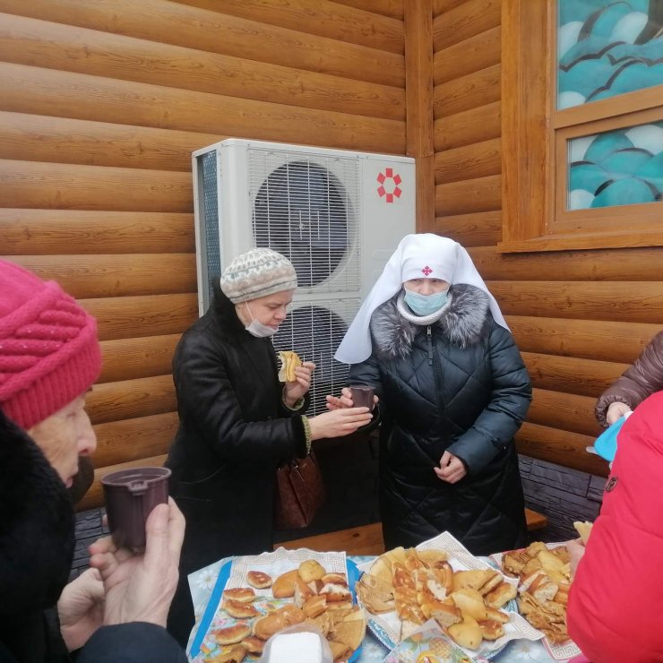 В этот день в храме в честь иконы Божией Матери «Знамение» состоялась Божественная Литургия, по окончании которой православное сестричество г. Ханты-Мансийска организовало чаепитие на территории храма. Всем прихожанам были предложены горячий чай с блинами и другими сладостями.