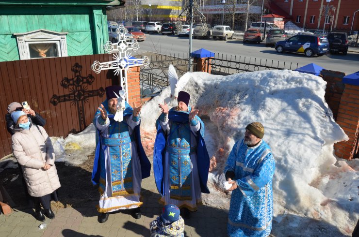 По окончании богослужения по традиции в честь праздника священнослужителями были выпущены в небо белые голуби.