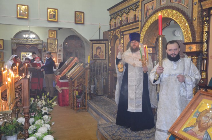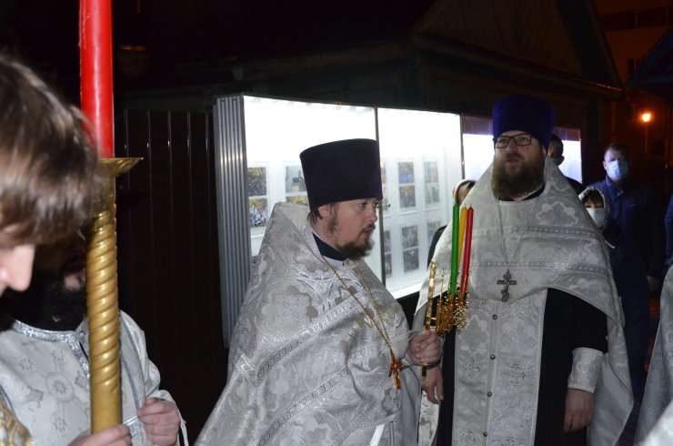 Полунощницу, Крестный ход, Пасхальную заутреню и Божественную Литургию возглавил настоятель Знаменского храма иерей Леонид Бартков. Его Преподобию сослужили клирики храма: иерей Андрей Зотов, иерей Константин Мемячкин, иерей Тарасий Борозенец, диакон Александр Фокин. После праздничного Богослужения, закончившегося в три часа ночи, отец Леонид освятил артос, затем зачитал Пасхальные послания Святейшего Патриарха Московского и всея Руси Кирилла и митрополита Ханты-Мансийского и Сургутского Павла.