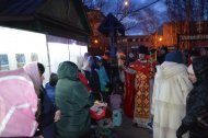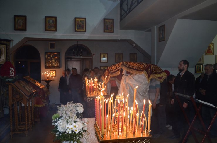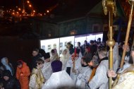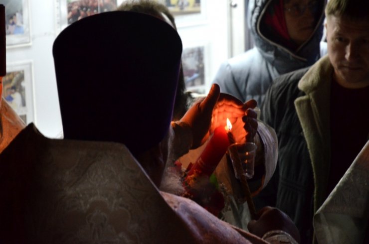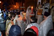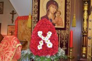 Вечером Великой Субботы прихожане в торжественном настроении начали стекаться в храм, где за час до полуночи началось служение полунощницы, на которой священники Знаменского храма выходят к Плащанице, кадят её, прикладываются и заносят в алтарь. В течение сорока дней – до дня Вознесения Господня – Плащаница будет пребывать на Святом престоле.