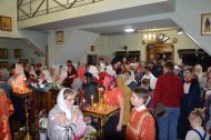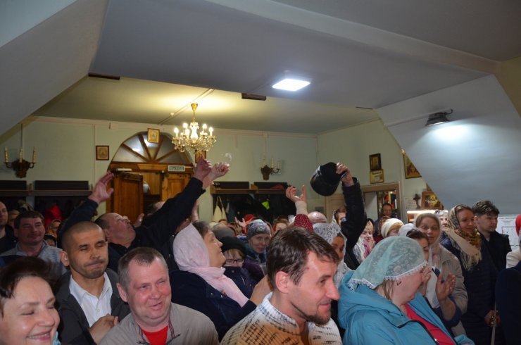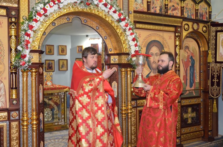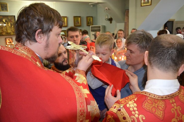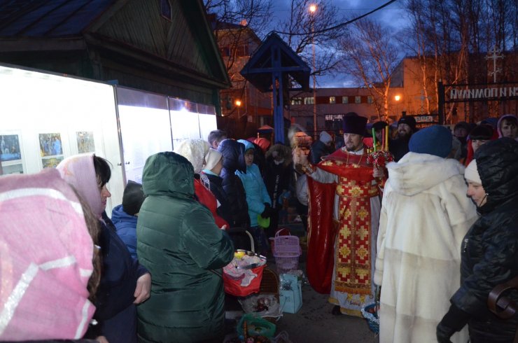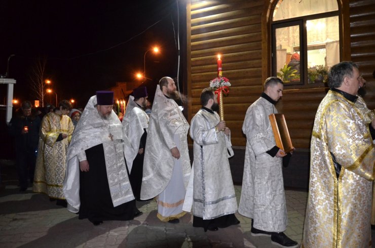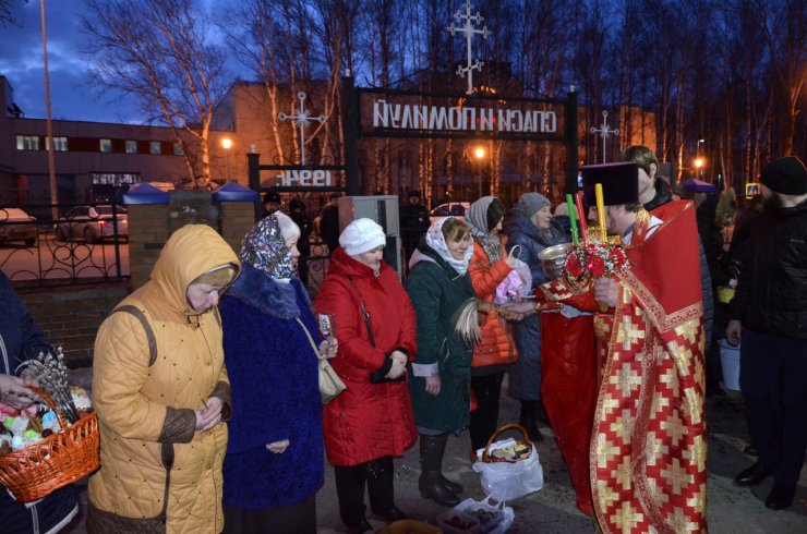 Настоятель храма иерей Леонид Бартков зачитал Пасхальные послания Святейшего Патриарха Московского и всея Руси Кирилла, митрополита Ханты-Мансийского и Сургутского Павла. После окончания Пасхальной литургии прихожане вышли во двор храма для освящения куличей, пасхи, яиц, булочных изделий. На праздничном богослужении присутствовало более 200 человек.