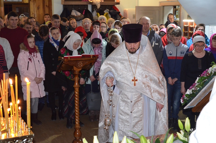С 7 на 8 апреля 2018 года в храме в честь иконы Божией Матери «Знамение» г. Ханты-Мансийска состоялось празднование Светлого Христова Воскресения.