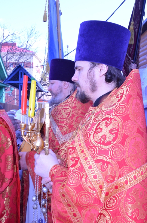 По заамвонной молитве прошёл традиционный крестный ход вокруг храма, сестры милосердия несли впереди хоругви с крестом, символизируя тем самим и самих Жён-Мироносиц. По отпусту настоятель торжественно вручил сестриченскую одежду четырем из новобранцев сестричества при пении особого тропаря. Всем молящимся за богуслежинием женщинам, девушкам и девочкам были вручены цветочек и сладкий подарок в виде шоколадки.