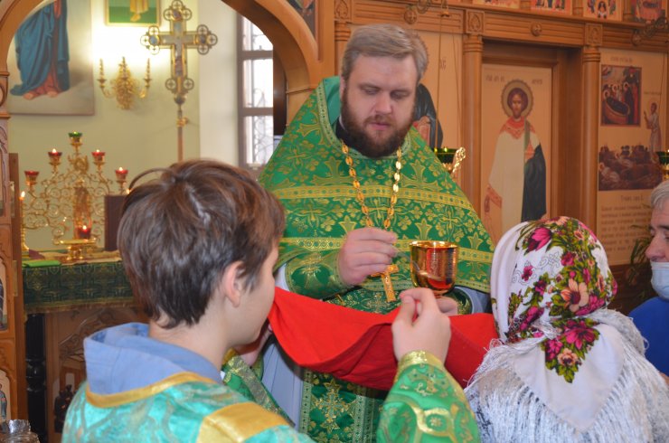 Божественную Литургию и Водосвятный молебен совершил клирик Знаменского храма иерей Андрей Зотов. Богослужебные песнопения исполнил церковный хор.