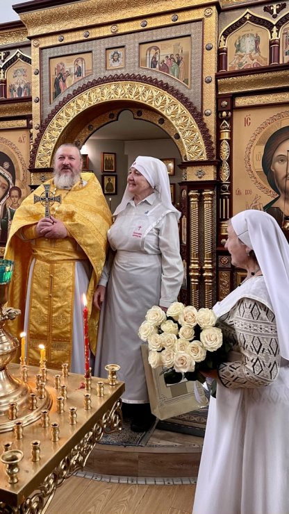 По окончании богослужения отец Константин поздравил с юбилеем Шмагайло Нину Александровну, сестру милосердия.