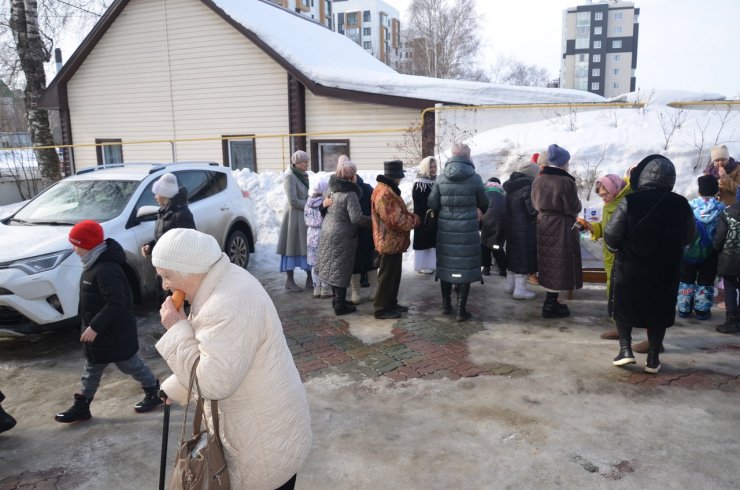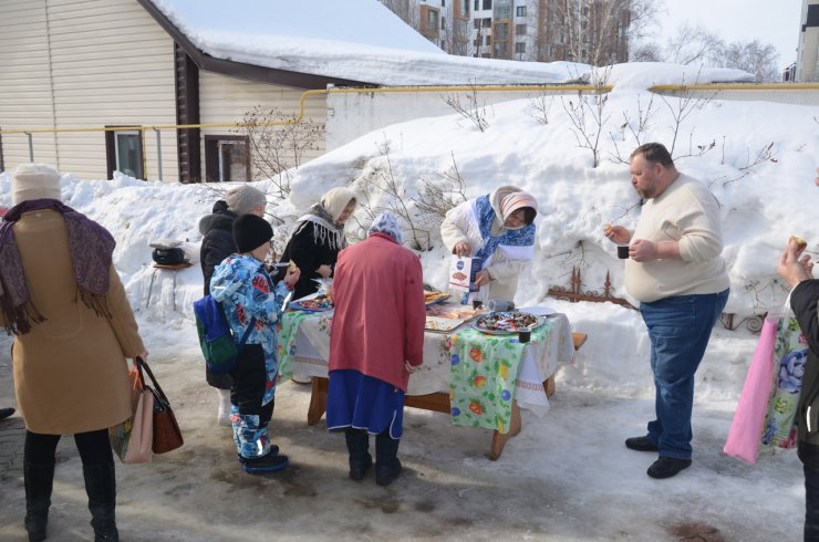 Затем на территории храма, усилиями православного сестричества, гуманитарным центром «Твори добро», было организовано чаепитие с блинами и другими сладостями. Прекрасная солнечная погода благоволила приятному общению.