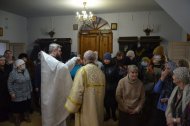 службу возглавил иерей Андрей Зотов, в служении клириков храма: иерея Константина Мемячкина и иерея Тарасия Борозенца. По окончании Литургии была совершена великая вечерня праздника Крещения Господня с чином Великого освящения воды.