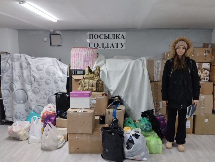 С октября ребята собирали гуманитарную помощь воинам СВО. В коробках теплые вещи, хозяйственные принадлежности, продукты, бронежилет и письма поддержки солдатам.