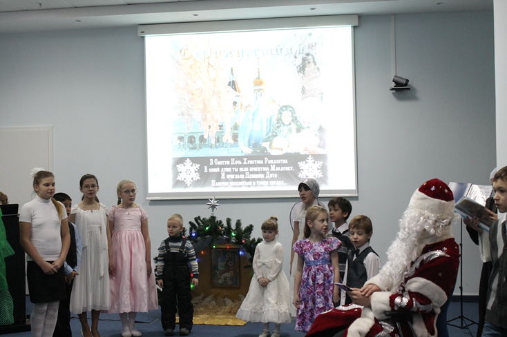 С приветственным словом ко всем собравшимся в зале обратился настоятель храма иерей Леонид Бартков. Учащиеся воскресной школы представили вниманию зрителей театральную постановку «Рождественская ёлочка», рождению Иисуса Христа были посвящены произведения композиторов-классиков в исполнении скрипично-фортепианного ансамбля, песни «Рождественская», «Взошла звезда ясная», «Рождество Христово», «Ночь тиха», красочная презентация.
