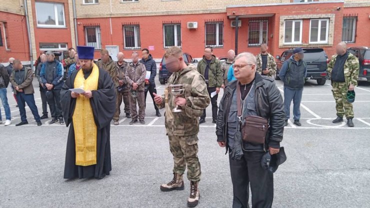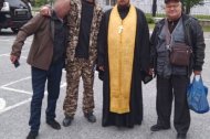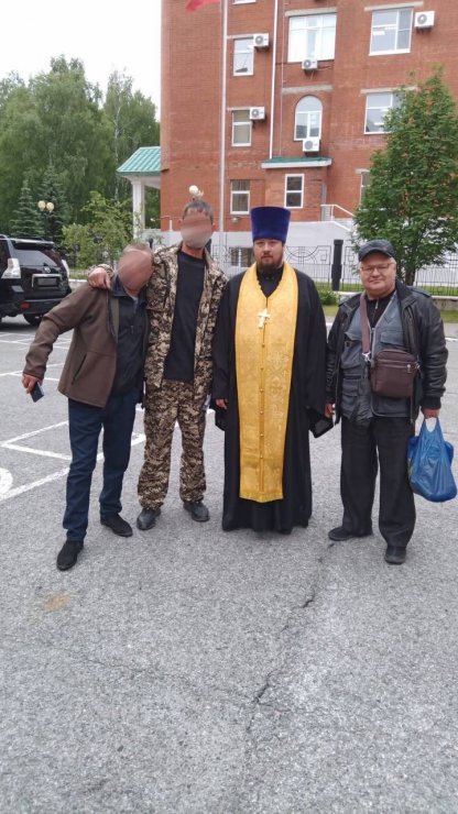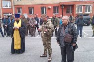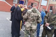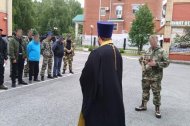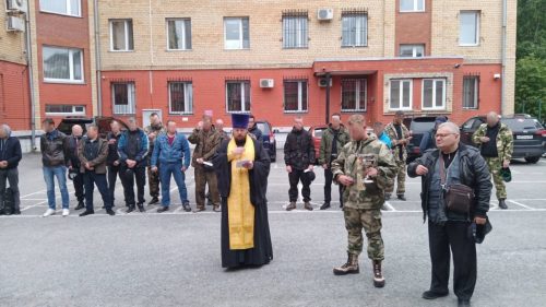 Настоятель Знаменского храма помолился вместе с добровольцами, окропил их святой водой, дал напутствие и обещал молиться за них.
