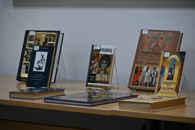 Выступления докладчиков сопровождались презентацией, а также настольной книжной выставкой, на которой были представлены книги о святом Георгии Победоносце и его роли в истории Православия и России.