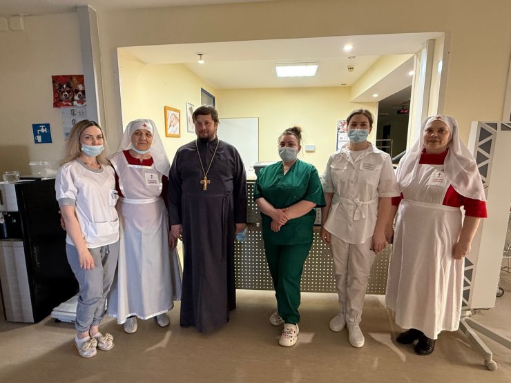 23 апреля 2025 года священнослужители храма в честь иконы Божией Матери «Знамение» иерей Леонид Бартков, иерей Андрей Зотов и иерей Тарасий Борозенец вместе с сестрами милосердия посетили отделение окружной клинической больницы, где состоялось радостное событие — поздравление пациентов и медицинского персонала с праздником Светлой Пасхи