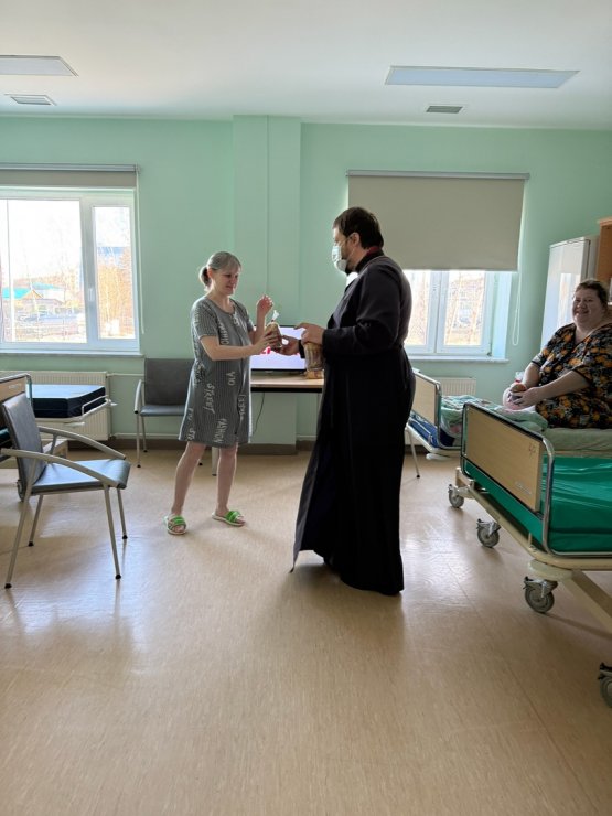 Священнослужители Знаменского храма поздравили пациентов Окружной больницы г. Ханты-Мансийска с праздником Светлой Пасхи