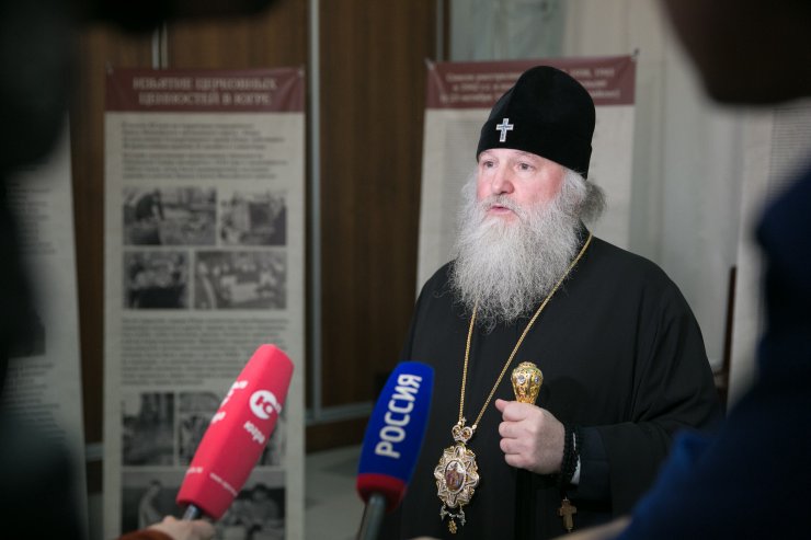 «Дорогие отцы, братья и сёстры, мы с вами сейчас словно перенеслись в тот период, когда рушились храмы. Слава Богу, что мы не жили все в то время- мы сейчас живем в другое время, когда нам пришлось, на нашу долю и в том числе мне, возглавляя епархию, здесь вместе с вами, со многими людьми, которые проживают сегодня в Югре, строить эти храмы на тех местах, где взорваны, где обезглавлены, как например, храм в Горноправдинске. который мы восстановили. И вот этот период, в который сегодня мы с вами живём, благоприятный по сравнению с тем периодом, о котором мы сейчас посмотрели часть фильма.