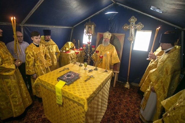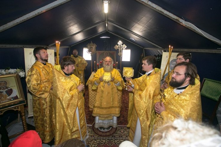 Его Высокопреосвященству сослужили: иерей Евгений Кизин, иерей Леонид Бартков, референт управляющего епархией иеромонах Антоний Кирпичев; диакон Алексей Полянцев.