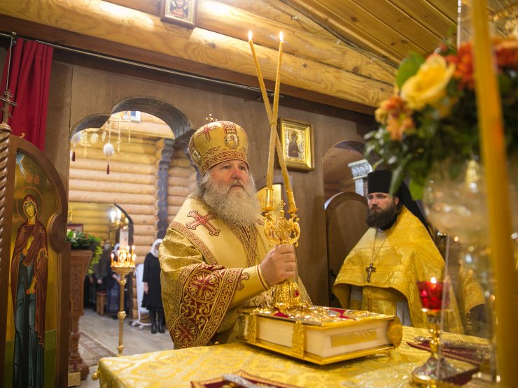 «Дорогие отцы, братья и сестры! Дорогой игумен Антоний с братией святыя обители, позвольте в этот особый день поприветствовать всех, кто пришёл на праздник разделить радость престольного дня нашей мужской обители и вознести свои горячие молитвы к небесному покровителю обители — святителю Димитрию Ростовскому, который находится в лике Сибирских святых. Из жития его известно, что он не доехал до Сибири по состоянию своего здоровья, но он всё время молился о пастве той земли, на служение которой он был назначен. Сегодня, отмечая его святую память, как небесного покровителя нашей обители, мы возносим молитвы и просьбы, чтобы он был предстателем у престола Божьего за каждого из нас и конечно же за братию обители, укрепляя их в монашеском подвиге, в делании спасения не только душ своих, но и всех, прибывающих в эту святую обитель, как к спасительному роднику. Монастыри всегда были лечебницами духовными, и сегодня имея часть десницы в обители, присутствие святых мощей — для нас это великий дар и вспоможение и в нашей жизни, и особенно в жизни монашествующих этой обители.