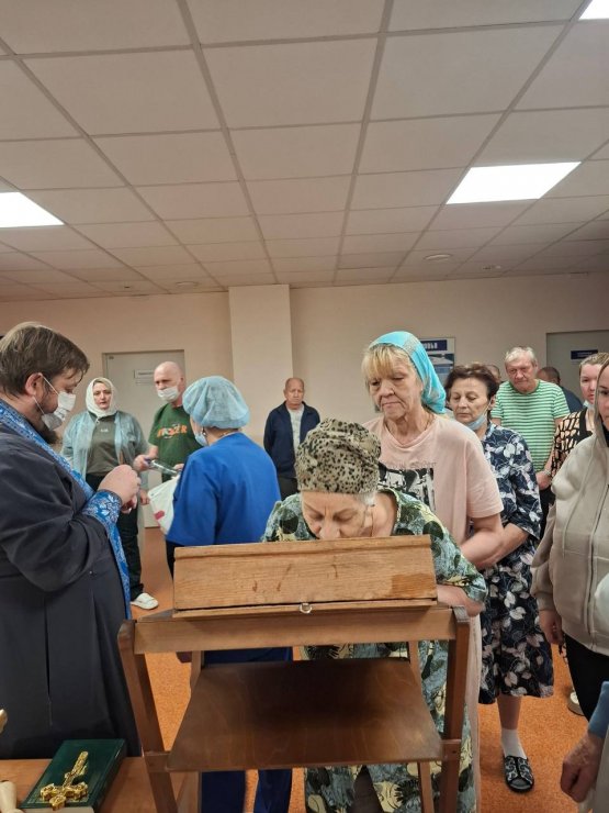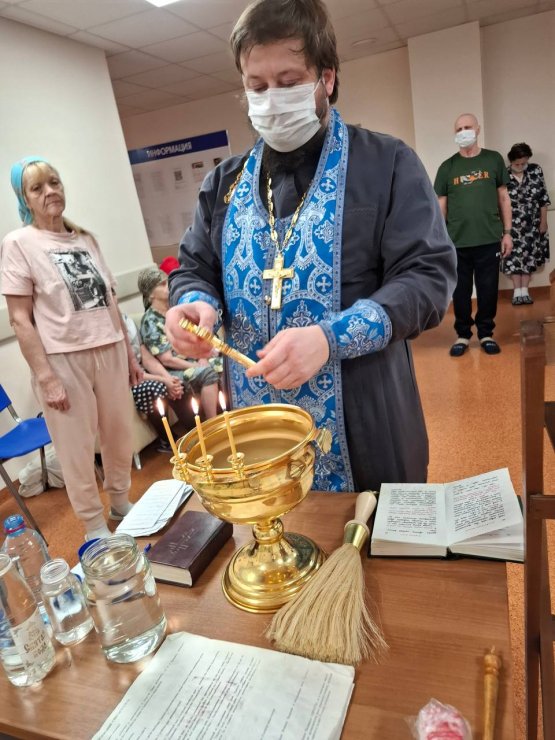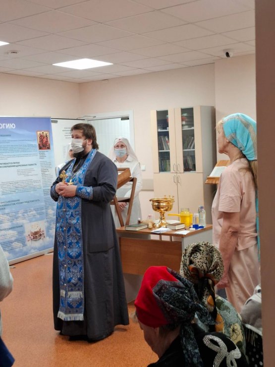 Помимо молебна, по просьбе близких, отец Леонид совершил Таинство Елеосвящения над двумя пациентами. Таинство Соборования является особым лекарством для души, данным самим Христом для исцеления душевных и телесных недугов. Участники молитвы верят, что по вере Господь подаст страждущим силы, утешение и облегчение в их скорби.