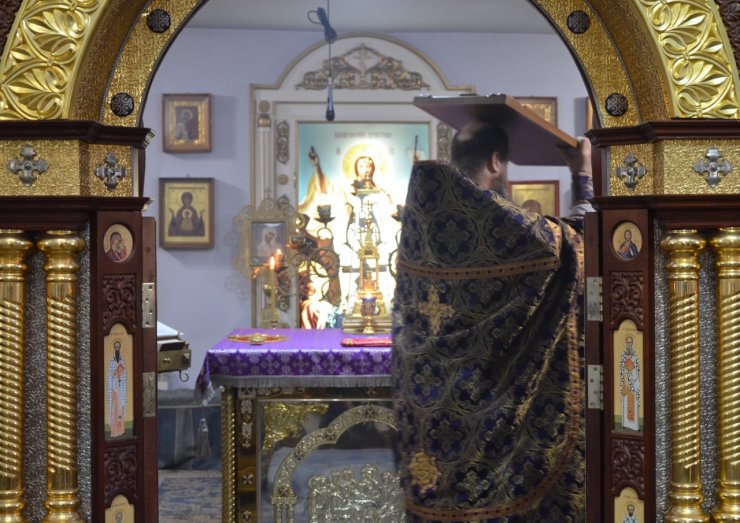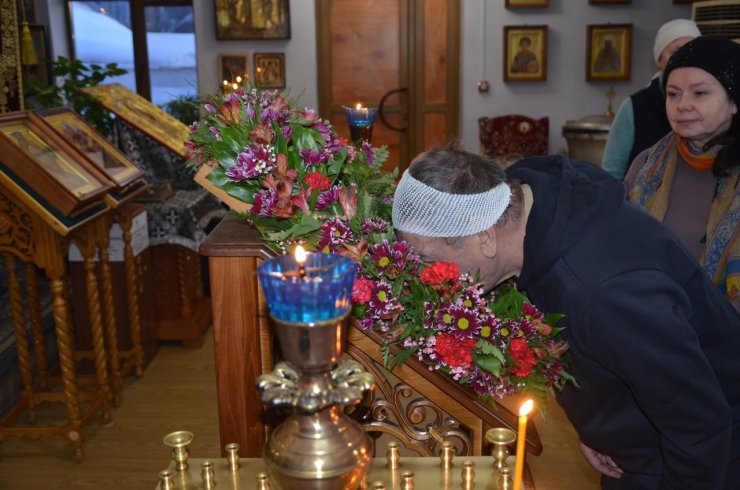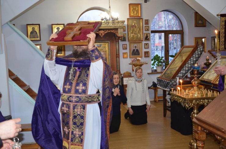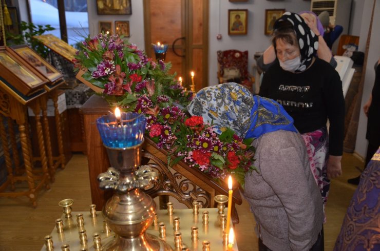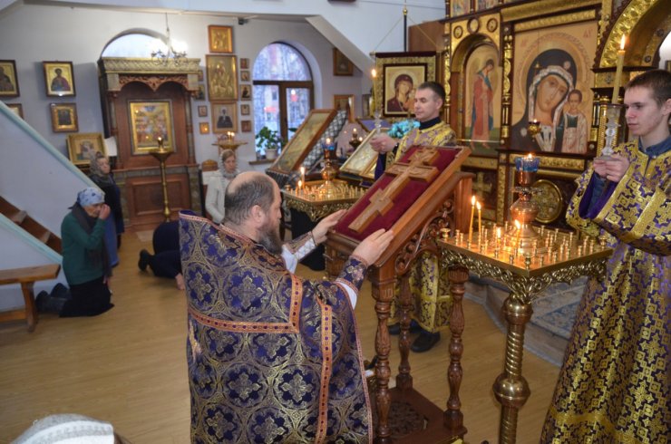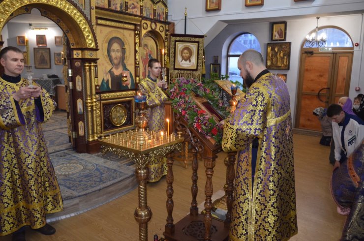 18 марта 2023 года, в неделю 3-ю Великого поста, Крестопоклонную, клирик храма в честь иконы Божией матери «Знамение» г. Ханты-Мансийска иерей Тарасий Борозенец совершил Всенощное Бдение с чином выноса Честнаго и Животворящего Креста Господня.