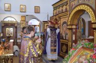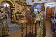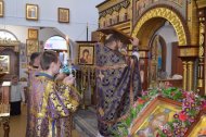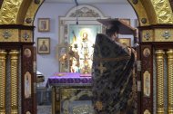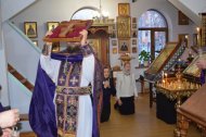 В канун Недели Крестопоклонной в Знаменском храме священник совершил всенощное бдение с чином выноса Креста