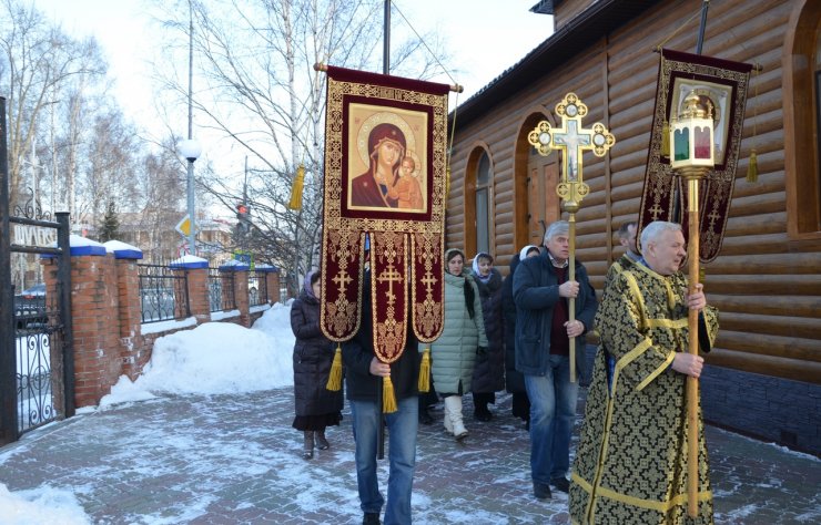 После чтения канона Великой субботы состоялся крестный ход, после которого Плащаница была положена на середину храма для продолжения поклонения православных верующих.