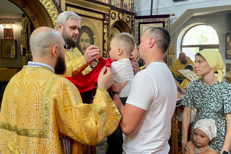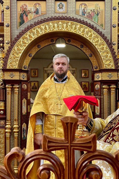 клирик Знаменского храма иерей Андрей Зотов в сослужении иерея Тарасия Борозенца и диакона Алексия Полянцева совершил Божественную Литургию.