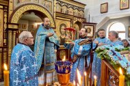 Возглавил Литургию настоятель храма иерей Леонид Бартков, сослужили ему клирики храма: иерей Андрей Зотов, иерей Тарасий Борозенец и диакон Алексий Полянцев.