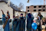 По древней традиции после богослужения были выпущены в небо белые голуби, символизирующие мир и чистоту.