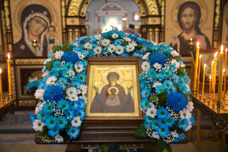 Сегодня мы с вами просим Царицу Небесную пред её иконой, именуемой «Знамение», чтобы она защитила нас от враг видимых и невидимых, от смертоносной раны и болезни.
