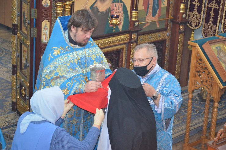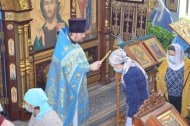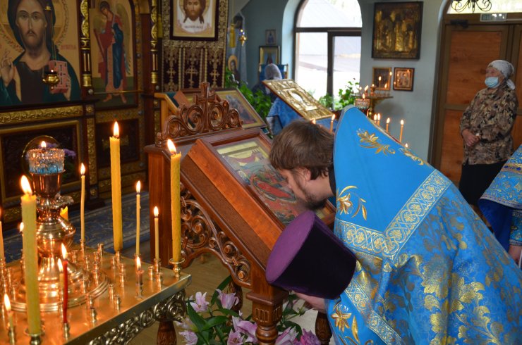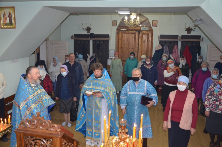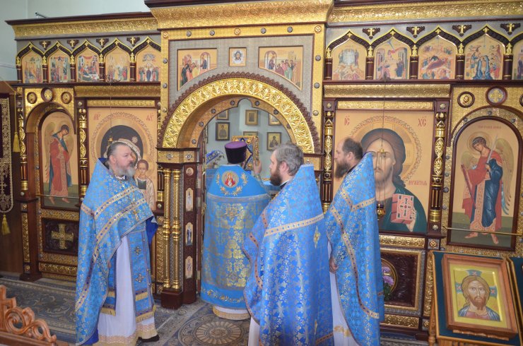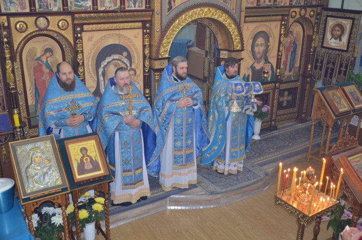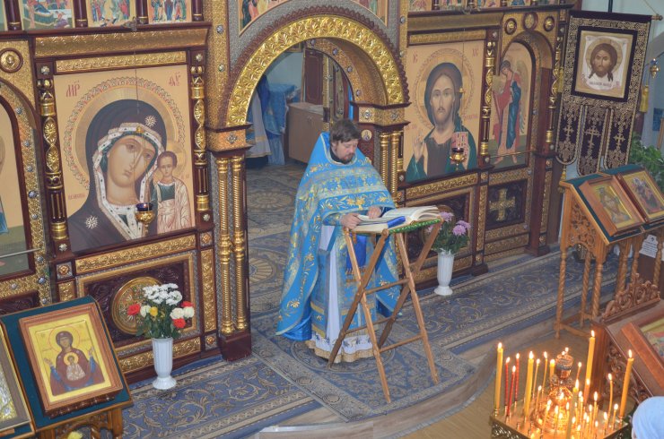 Божественную Литургию совершил настоятель храма иерей Леонид Бартков в служении клириков храма: иерея Андрея Зотова, иерея Константина Мемячкина, иерея Тарасия Борозенца.