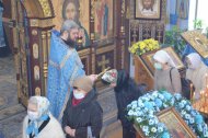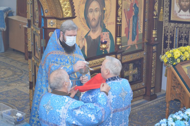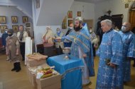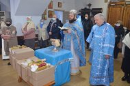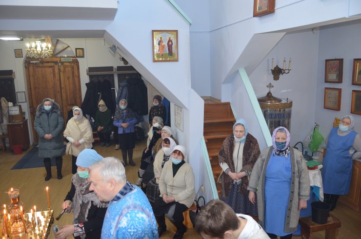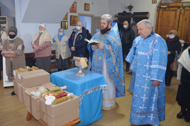 Клириком храма иереем Константином Мемячкиным был совершен водосвятный молебен, затем иерей Андрей Зотов возглавил Божественную Литургию, по окончании которой батюшка совершил чин освящения свечей на Сретение.