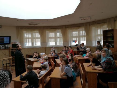 Клирик Знаменского храма, иерей Тарасий Борозенец напомнил детям о смысле православного поста, рассказал о жизни, проповеди и мученической смерти первоверховных апостолов Петра и Павла, об истории установления поста в их честь, призвал к чтению и изучению книг Деяний и Посланий апостольских.